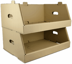 konstrukcje reklamowe wykonane z tektury, służące do prezentacji produktów, materiałów promocyjnych lub informacji.